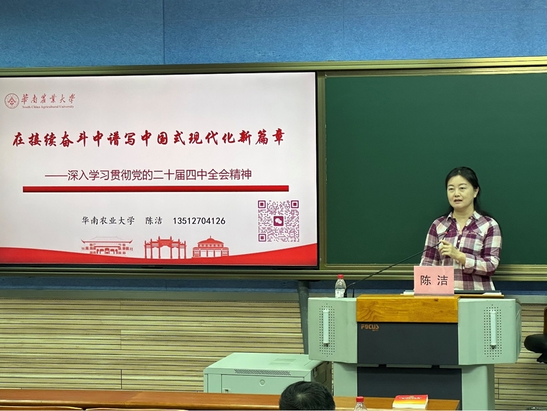 陈洁老师主要从解码党的二十届四中全会的核心内涵,高度重视“十五五”规划的深层逻辑,“十四五”时期的历史性成就与实践底气,主流媒体重磅文章的核心信息密码,党的二十届四中全会究竟擘画了怎样的未来蓝图等五个方面进行授课,数据翔实、案例生动、讲解细致,通过此次授课,全体教职工对全会精神有更深的理解和体会。