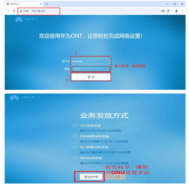 2、用户自助连接光猫(ONU)进行配置修改。